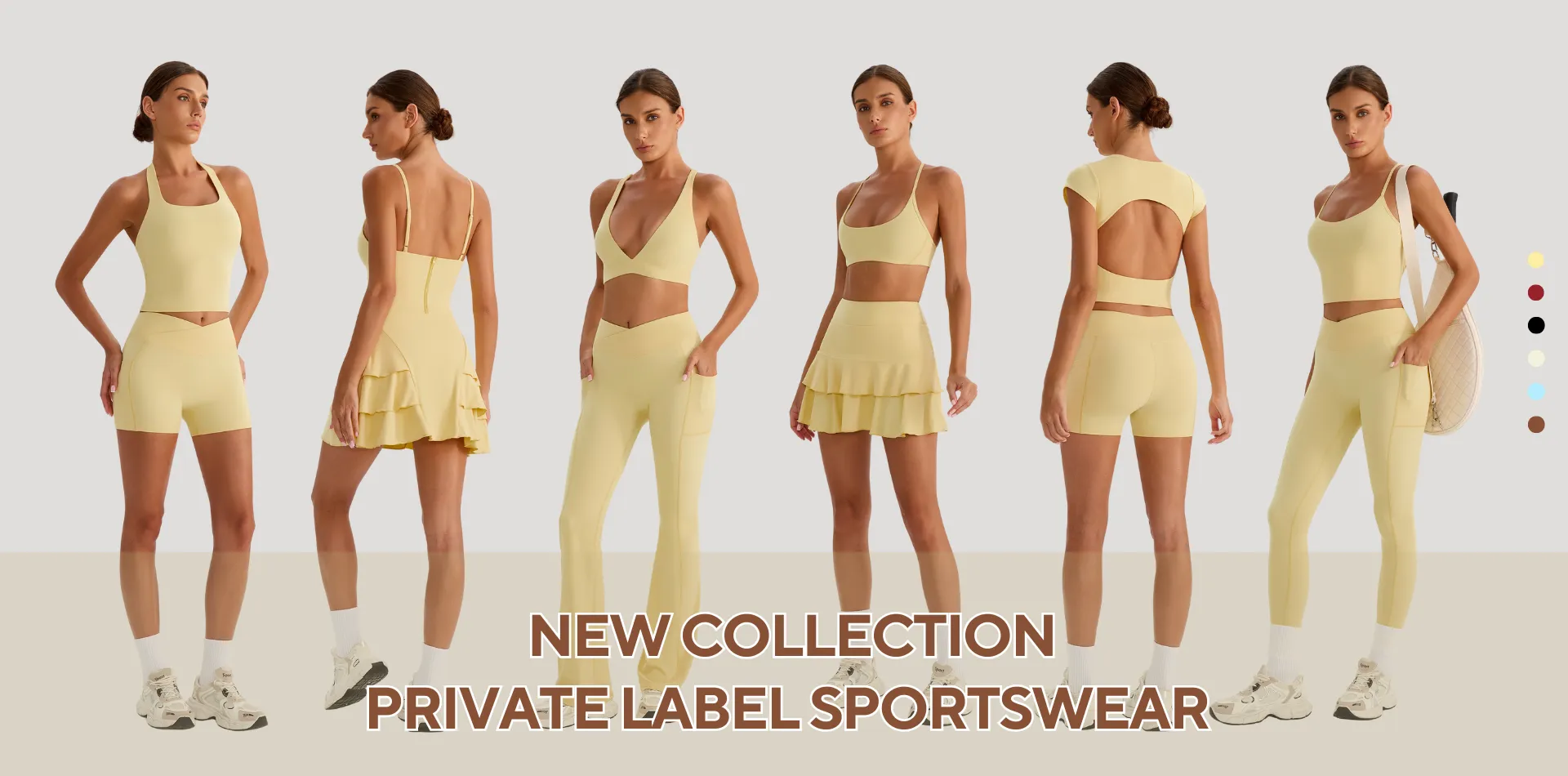 As a leading Chinese sports wear manufacturer with 2 generations of heritage, we specialize in premium custom sportswear for retail brands worldwide. Our low MOQ starts at 100 pieces per color with complete private label sportswear services—including logo, care labels, tags, and packaging. Choose from 1000+ instock styles: wholesale yoga apparel, fitness wear, tennis outfits, men’s activewear, kids’ sportswear, and workout accessories.