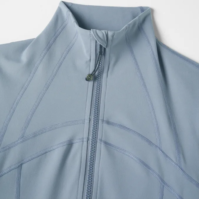 Stay warm and stylish during cooler workouts with our Brushed Slim-Fit Zip-Up Yoga Jacket. Designed for active women, this tight zip up jacket features a windproof stand collar and flattering slim-fit cut that contours to your body while allowing freedom of movement. The zippered pockets keep your essentials secure, while the thumbhole cuffs provide extra coverage and sleeve stability during runs or yoga sessions.